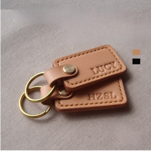 Genuine Cowhide Keychain with Copper Opening Ring