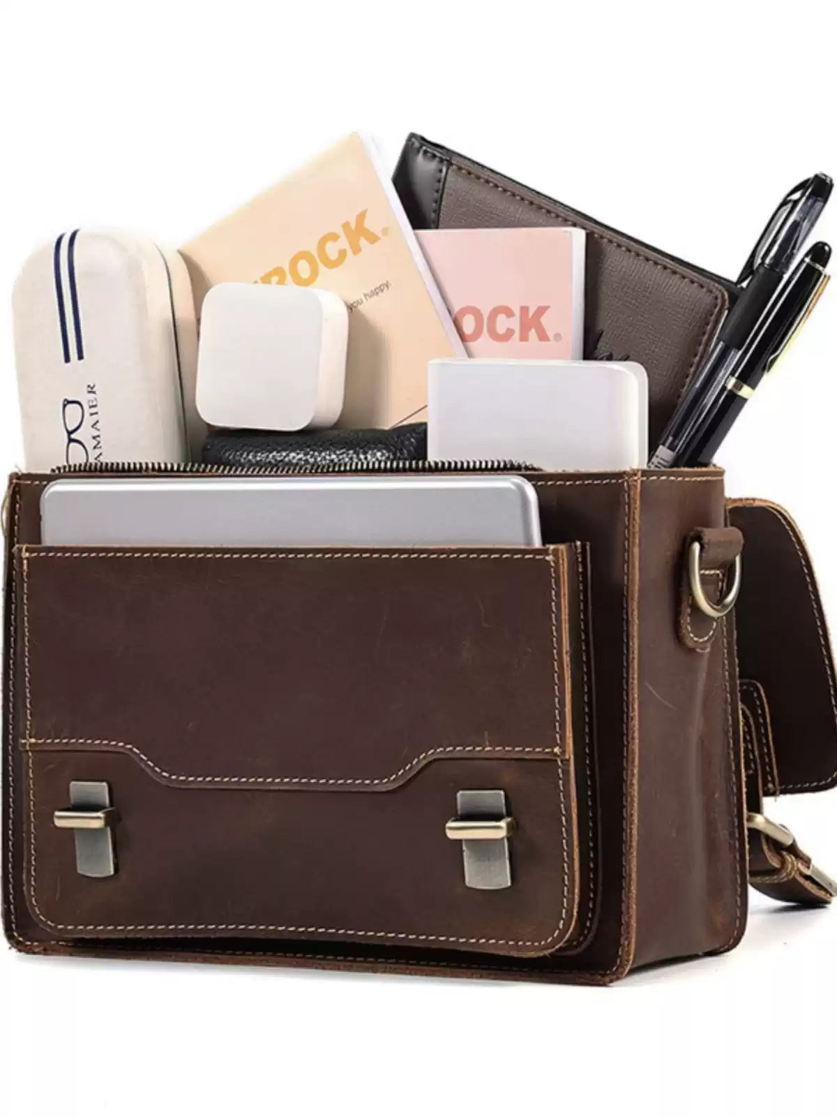 - Introducing a classic messenger bag crafted from vintage-style horse leather.